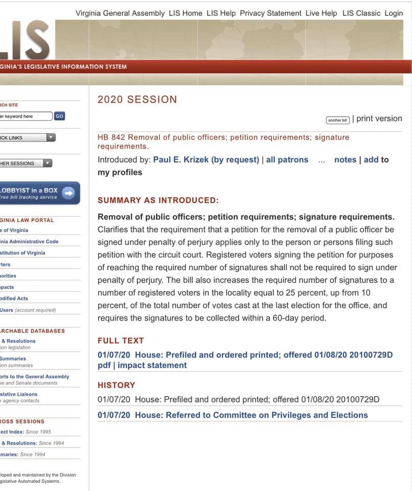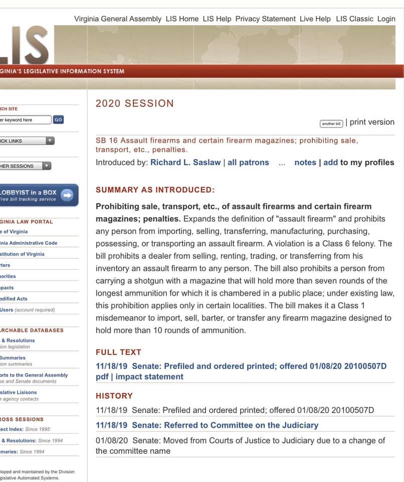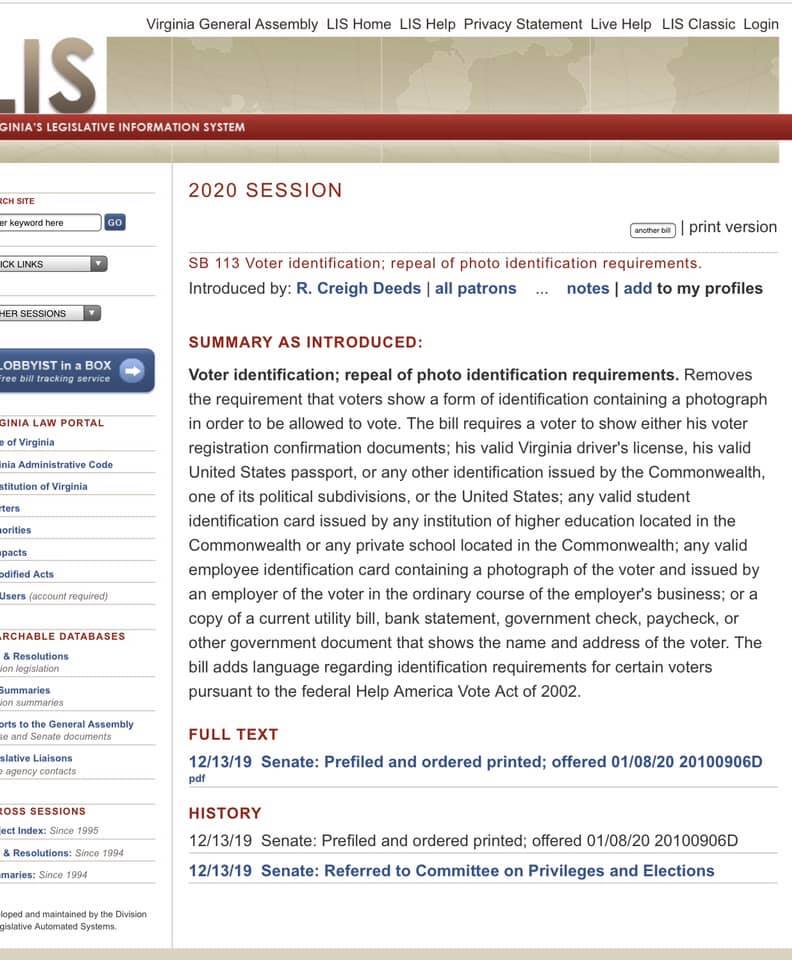With good cause, and to counter the fake news media, I think it’s smart to verify what you say, so here are screenshots straight from the Virginia Legislative Information System: